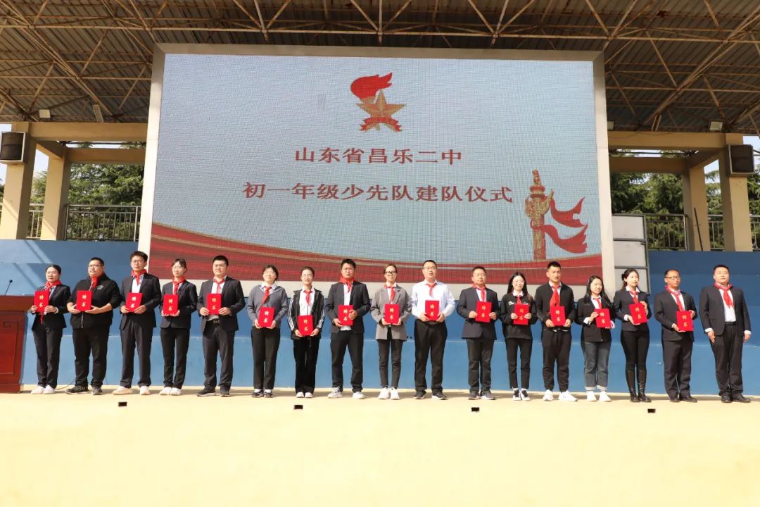 初中年级主任董智超和初一年级主任张瑜依次宣读了“山东省昌乐二中关于聘任2022至2023学年度中队辅导员的决定”和“初一年级中队成立决定”。董智超主任并为中队辅导员颁发聘任证书。