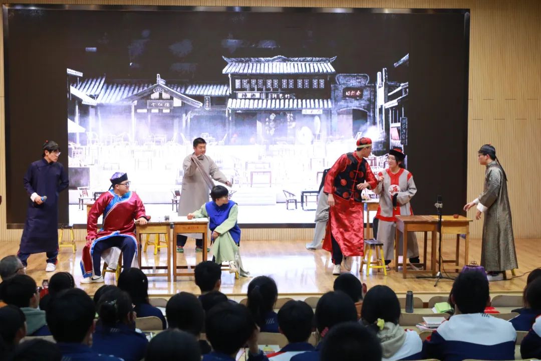 期间,语文老师和同学们还奉上了精彩的文创节目,诗歌朗诵、话剧,师生声情并茂的表演,活跃了全场,赢得了大家的热烈掌声。