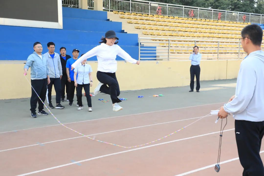 此次比赛,学校工会联合体育组精心组织,广泛发动,各年级、中心处室教职工积极参与。活动中,老师们激情参与,踊跃挑战,他们舞动手中的跳绳,跟着节奏轻盈跳动,不断变换着花样,神采飞扬,跳出了风采,展现了昌乐二中教职工奋勇拼搏、积极进取的精神风貌。