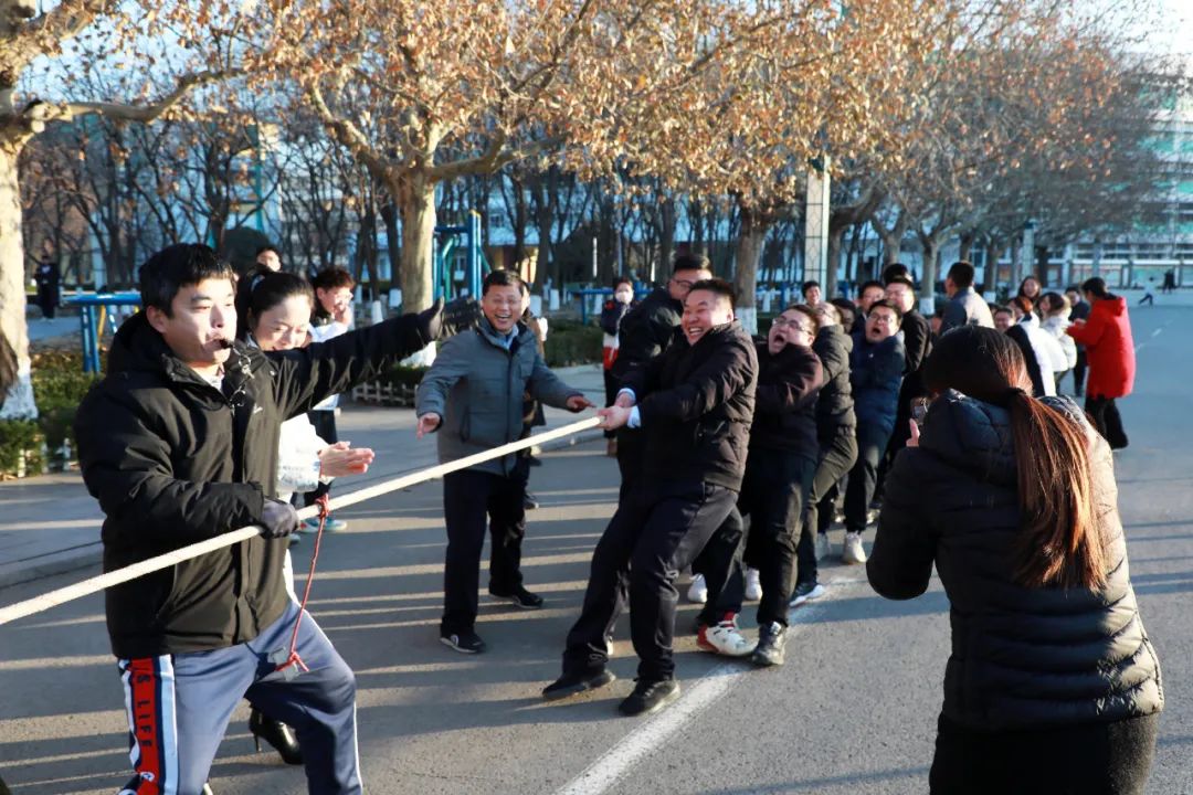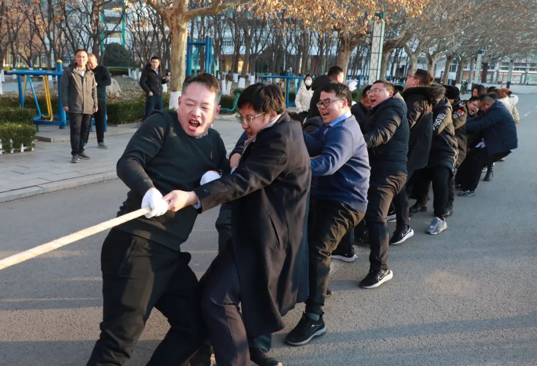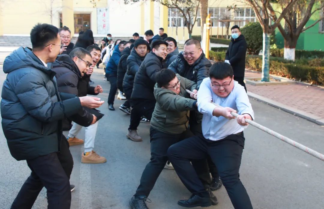 现场虽然天气寒冷,但老师们却热情不减,个个精神抖擞,激情满满。随着双方队伍上场,老师们集中精力,紧握长绳,鼓足劲、憋足气,蓄势待发。等到哨声响起,老师们一起发力,喊着号子,齐心协力,拼尽全力,俨然一副“力拔山兮气盖世”的豪迈气势。现场欢呼声、加油声、掌声响成一片,此起彼伏。在阵阵加油呐喊声中,所有队员士气高涨,很好地展示了昌乐二中教职工团结进取、奋勇争先的良好精神风貌。