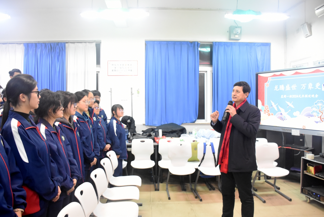 学校领导、老师们来到各班教室,给同学们送上温馨的新年祝福和美好的期许。师生欢聚一堂,互赠祝福,憧憬美好明天,共享节日的快乐。