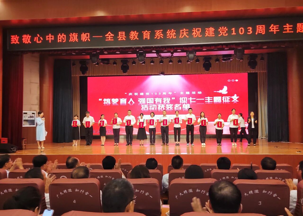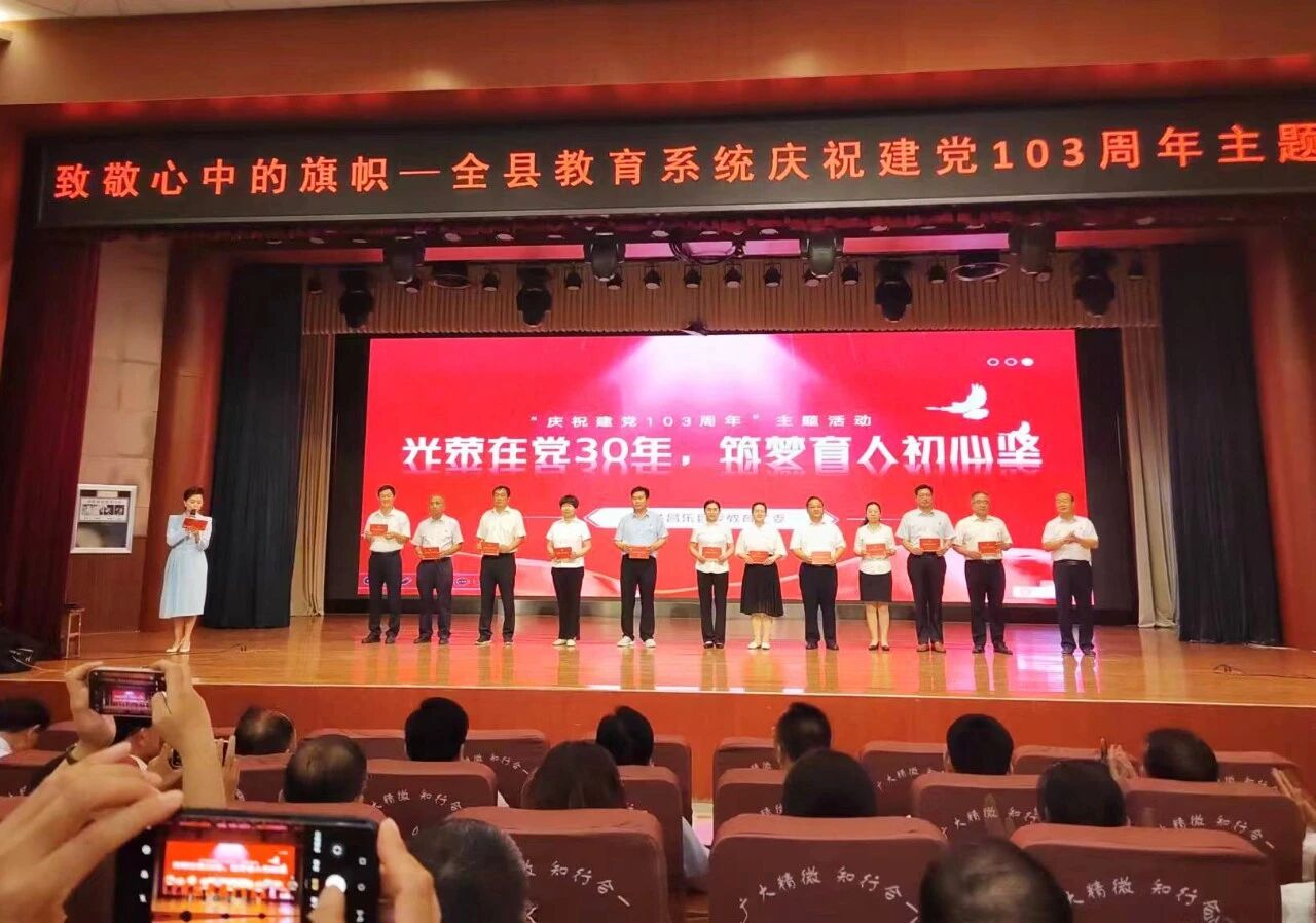 因党建工作成绩突出,我校被潍坊市委教育工委授予“潍坊市教育系统先进党组织”。在全县教育系统“致敬心中的旗帜——庆七一”主题活动中,我校田永娟老师光荣获得“在党三十年”勋章,燕嘉宁、崔建森老师在“筑梦育人,强国有我”迎七一主题征文活动中获奖。三位老师在全县教育系统“庆七一”表彰大会中,受到表彰。