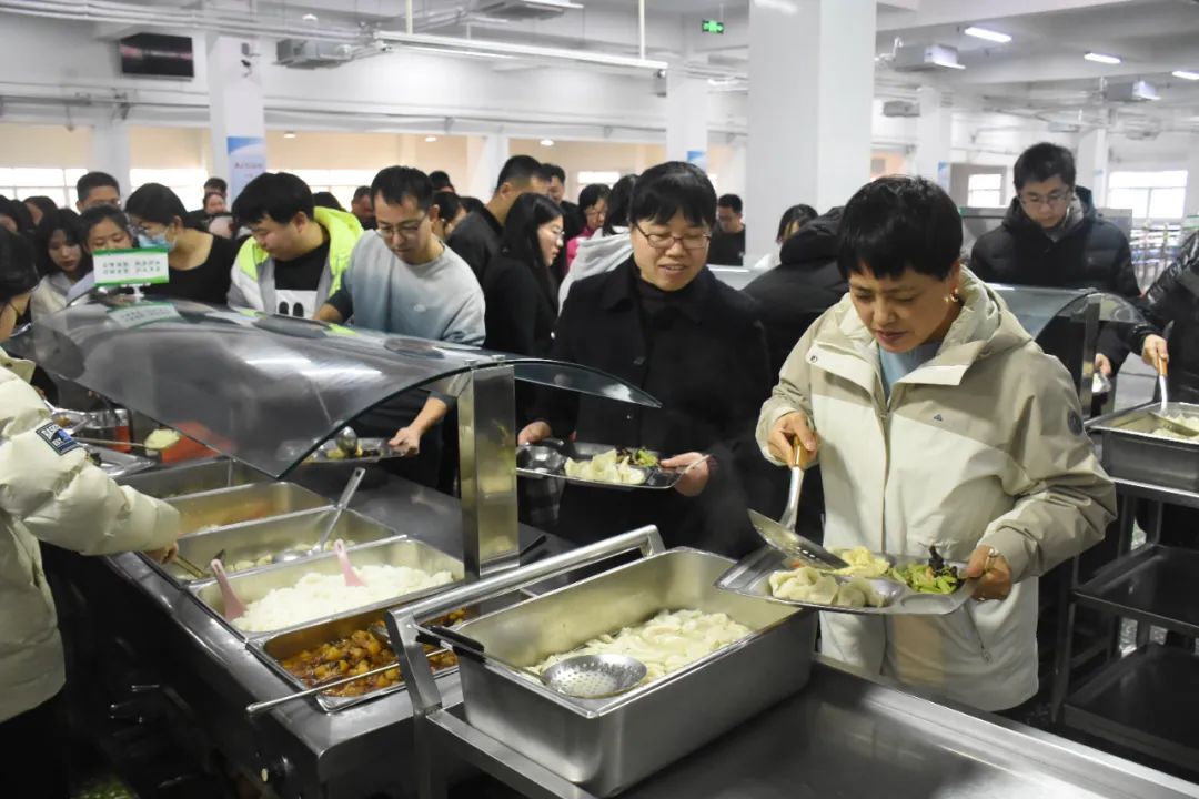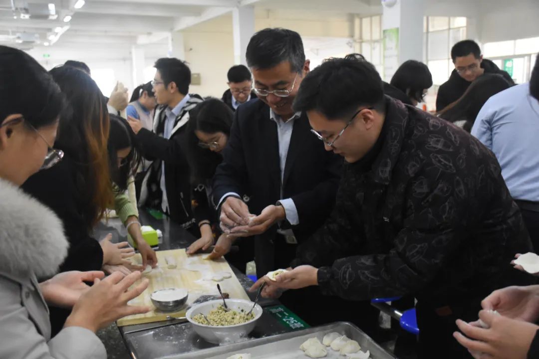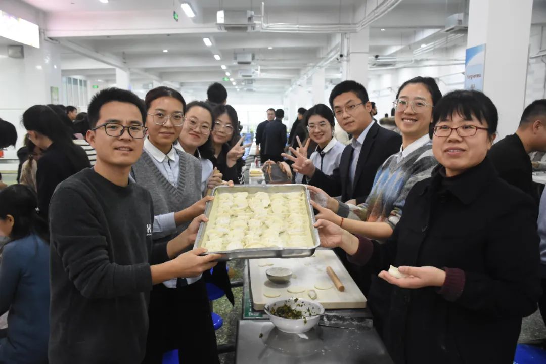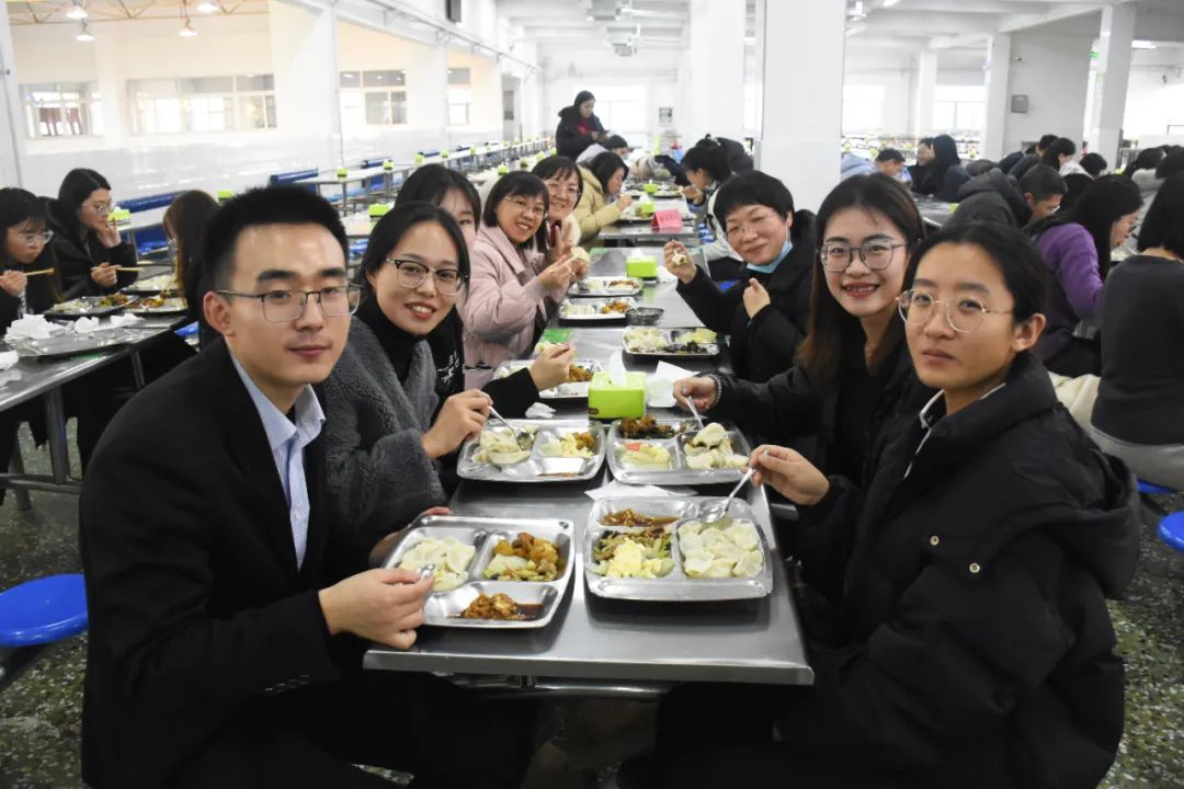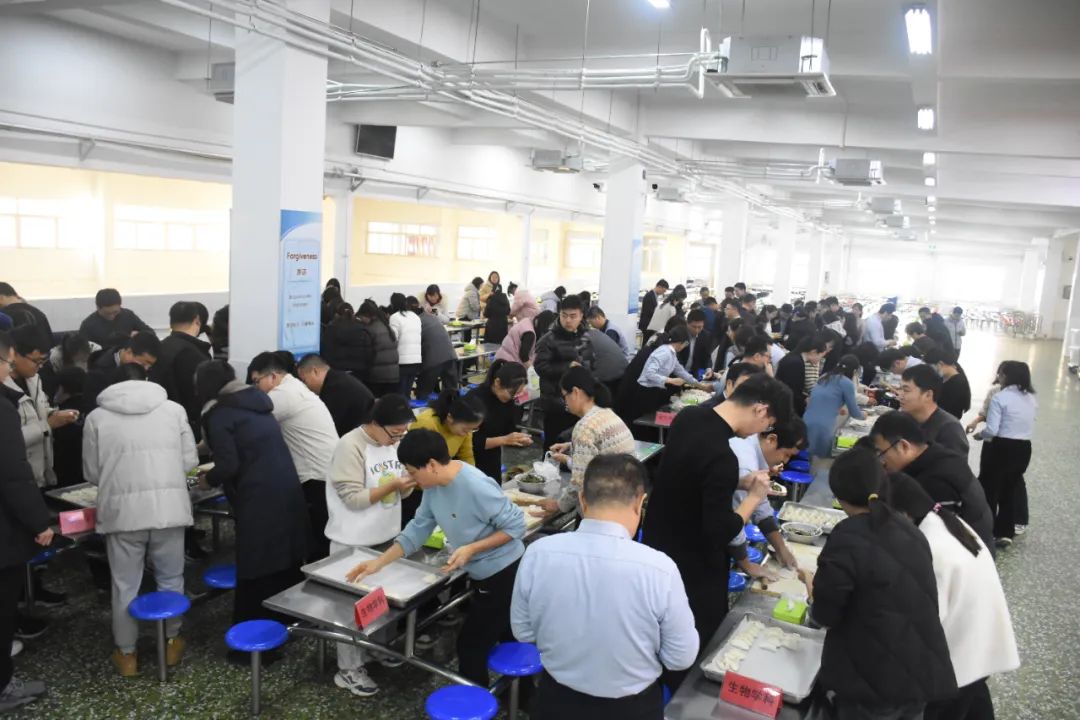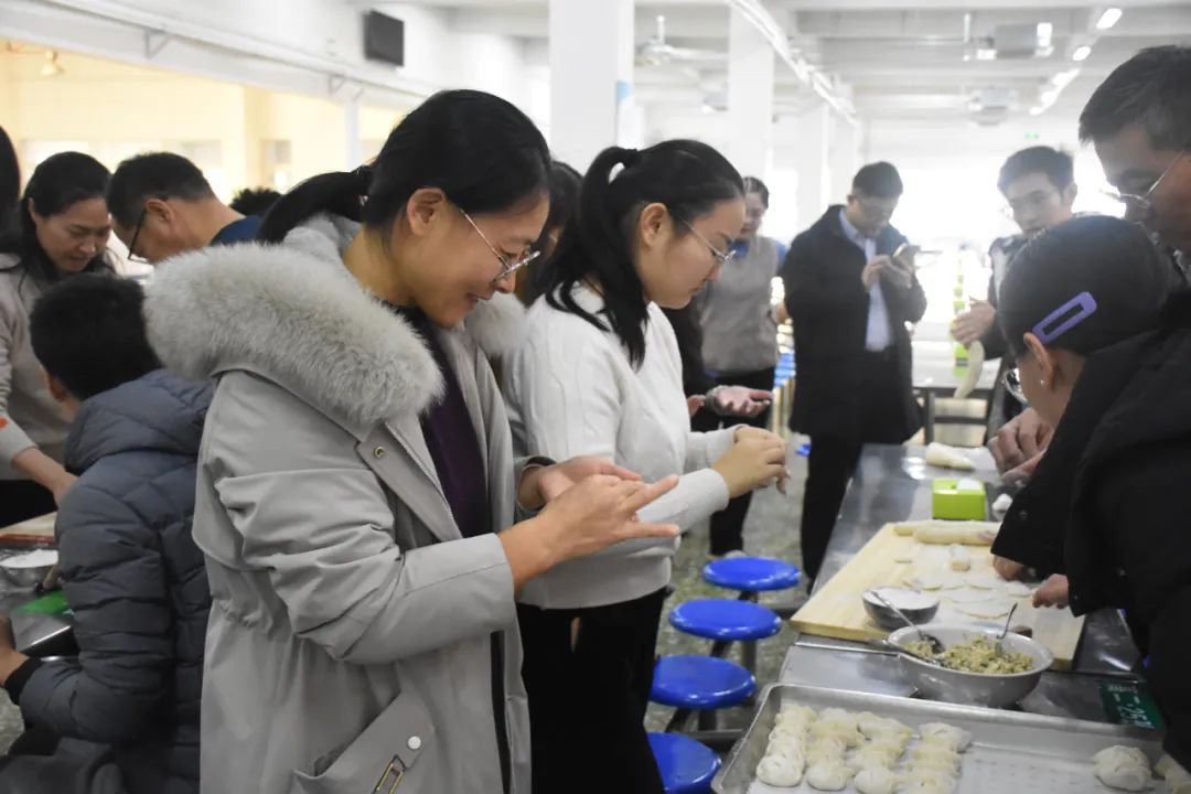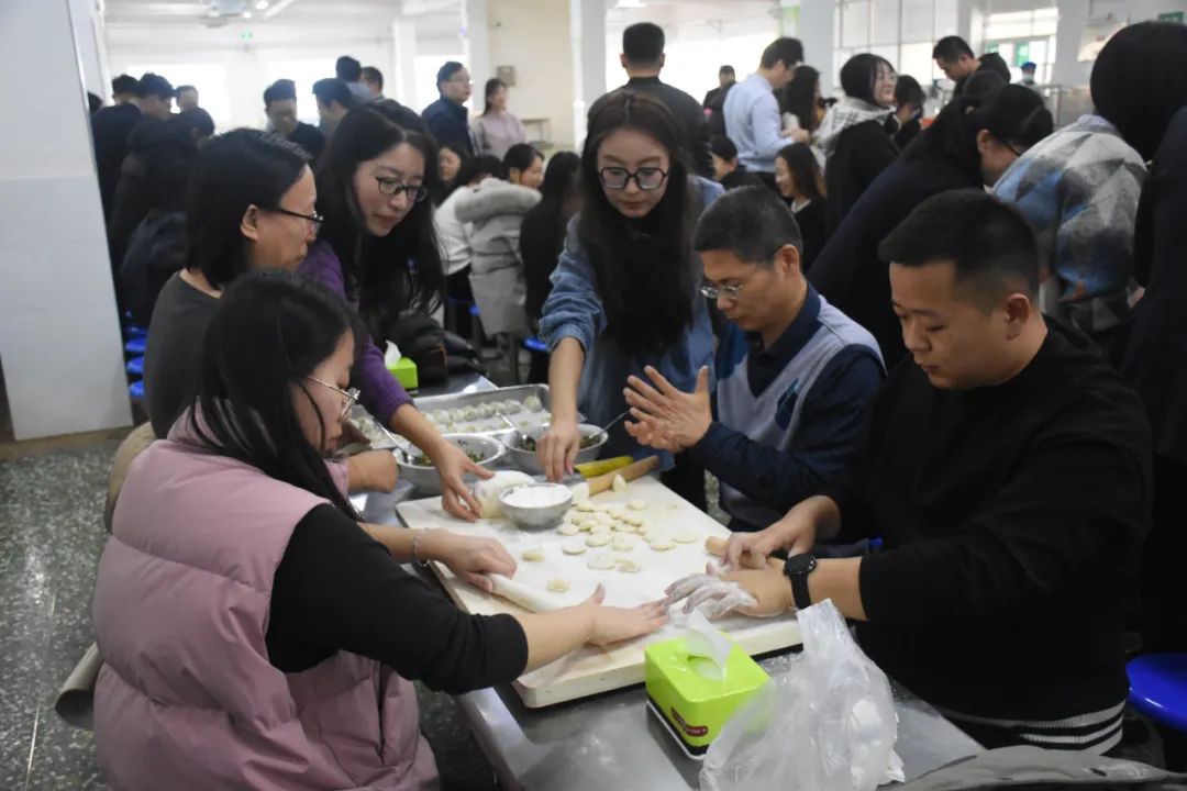 活动现场热火朝天,氛围高涨。老师们一边包水饺,一边拉家常,脸上都洋溢着幸福的笑容。一家人在一起、其乐融融的场景温暖整个校园。