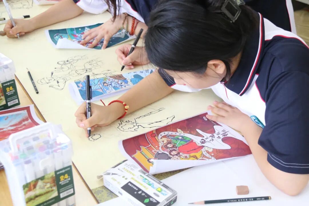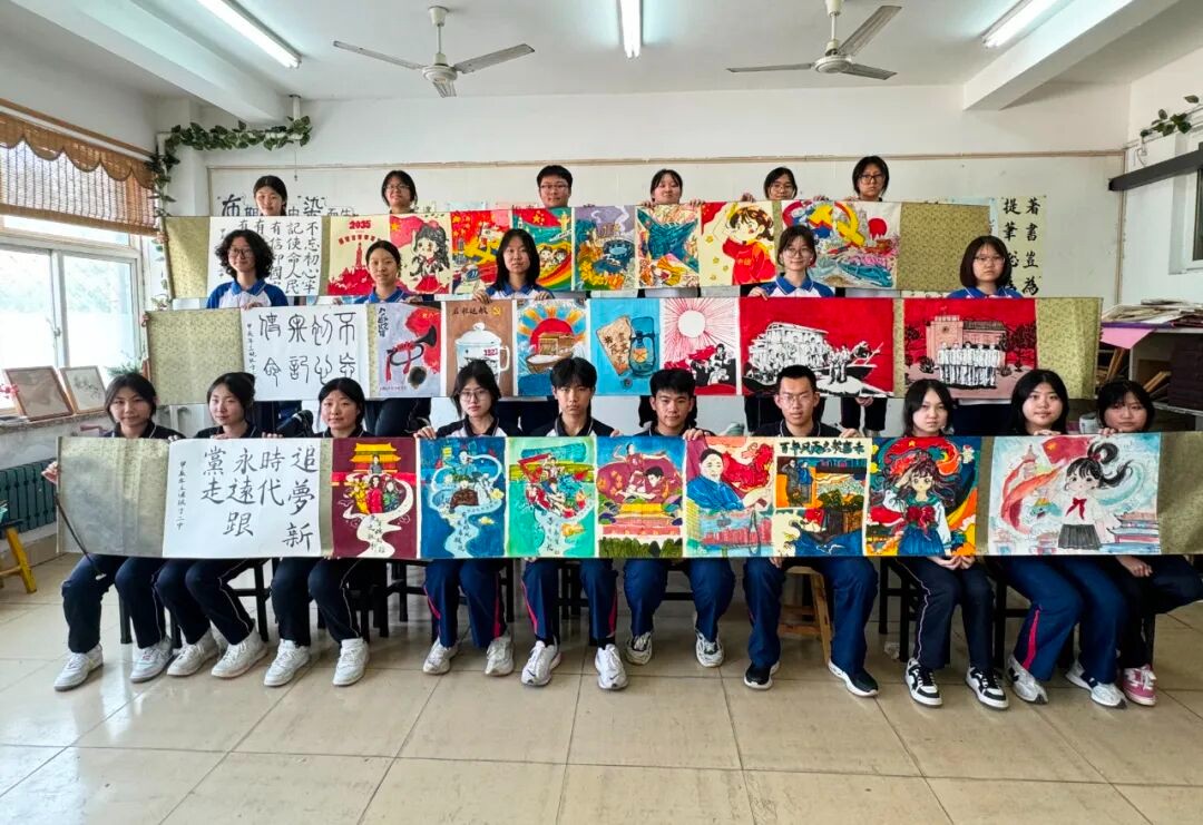 青春心向党,永远跟党走。同学们用手中的画笔,描绘党的奋斗历程和祖国的美好蓝图,以此表达对党对国家的热爱和祝福。一幅幅作品生动诠释了昌乐二中学子的家国情怀和使命担当。