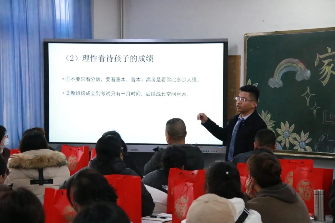 本次家长会以班级为单位组织进行,家长朋友们如约走进各自班级,观看了学校年度视频,聆听了校长寄语及高中部三位包级领导的汇报,与首席导师围绕学生在校的点滴成长、家长困惑与反馈、家校联动共育策略等方面展开了深入而细致的交流。任课教师则结合学生的表现和学科特点,从教材应用、寒假要求、学习习惯等方面与家长们分享了教育方法,并提出了家长促学和家校协作的建议。