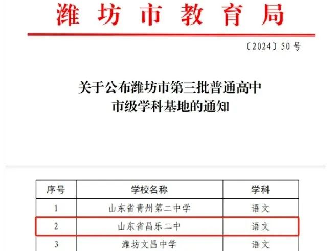 2024年,我校教师赵建胜继在市级决赛中斩获特等奖后,又在全省中小学青年教师教学竞赛决赛中荣获一等奖第一名。一年来,学校大力深化校本教研,打破年级限制,组织实施“高中学科研究贯通”“初高中学科培养贯通”“初高中学段培养贯通”三个贯通,对接高考要求,精准把握育人方向,提升教师专业素养。同时,积极组织主任教师示范课、星级教师示范课、优质课、教学能手评选、创新展示课等教科研活动,让教师在参与中得到锻炼与成长。学校名师不断涌现,老师们在各级各类大赛中获得了多项荣誉:潍坊市教学成果奖33项;潍坊市优质课一等奖6人、二等奖12人、三等奖2人,昌乐县三个全市第一名均在我校;昌乐县12大学科优质课评选中,我校包揽9项第一名,潍坊市数学、物理、政治等学科现场会先后在我校召开,我校先后荣获语文和物理市级学科基地。学校获评全国课程改革骨干教师研修基地、山东省教师专业发展研究基地、山东省教师教育实践基地等多项荣誉称号。