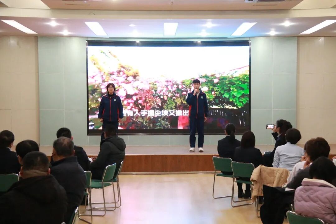 活动现场充满温馨与欢乐,在高二音乐社团徐陈好、张福祥同学优美动听的歌声《岁月里的花》中生日会开始。