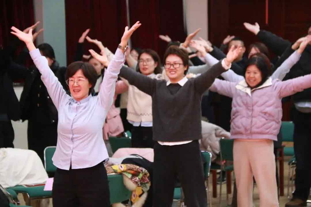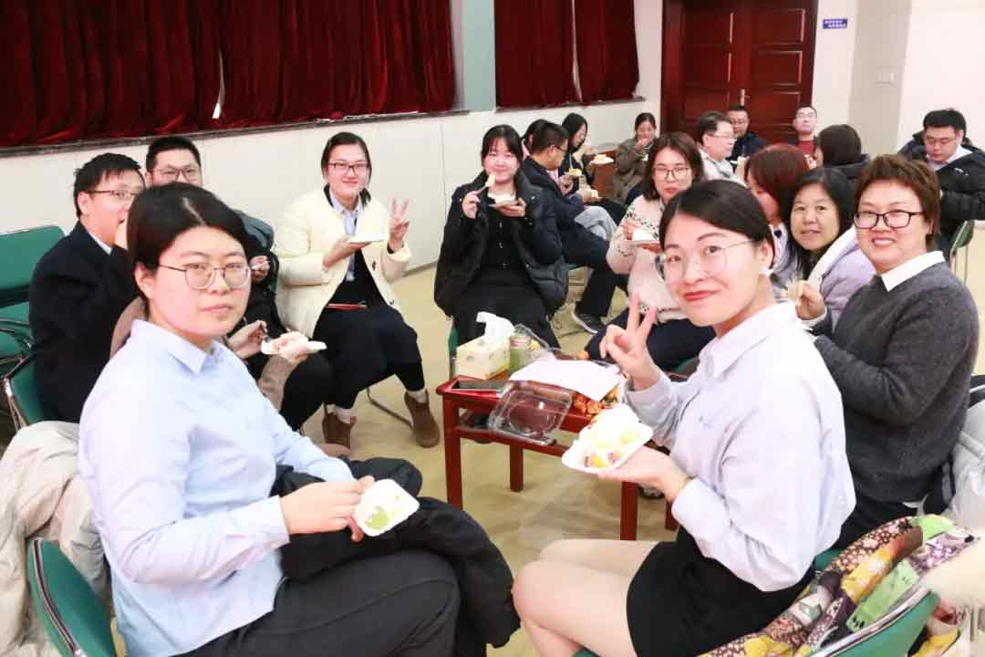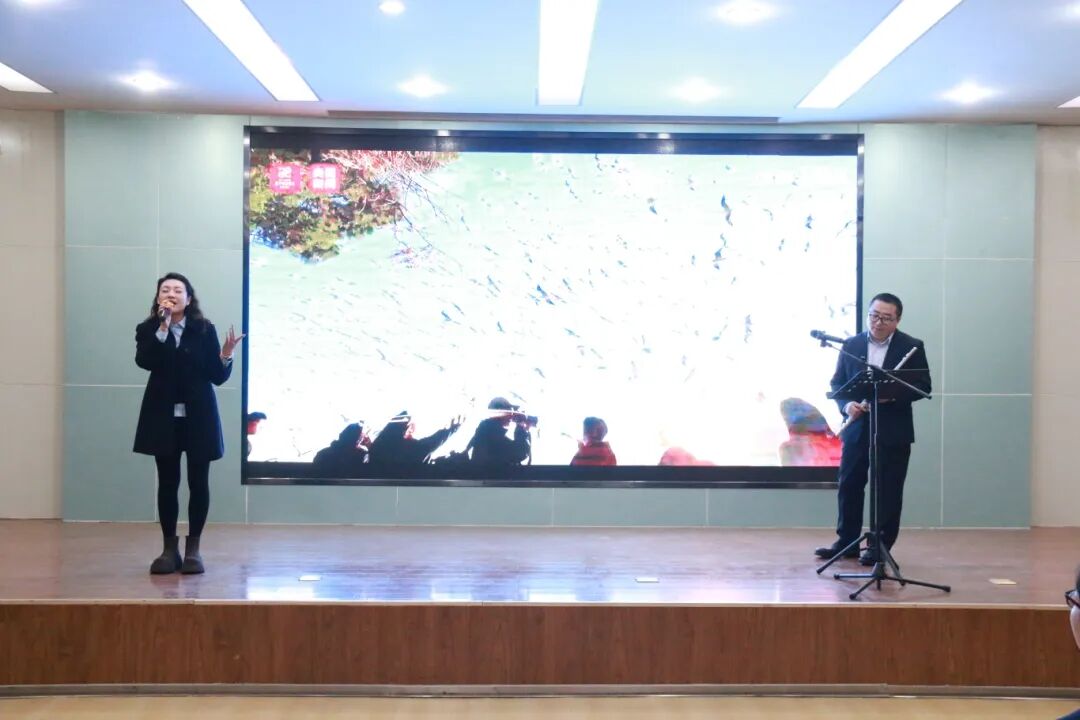 生日会期间,赵丛丛、杨琪老师为大家带来了长笛演奏《世界赠予我的》,悠扬的歌声回荡在会场,让人陶醉其中;赵丹丹老师组织的互动舞蹈《2025新年开工舞》更是将现场气氛点燃,教师们积极参与,热情洋溢,充分展现了昌乐二中教师们的活力与风采。