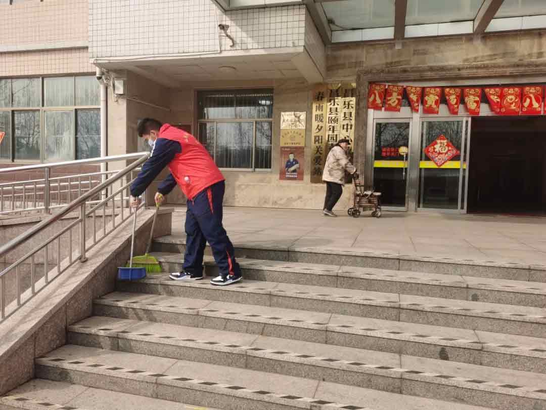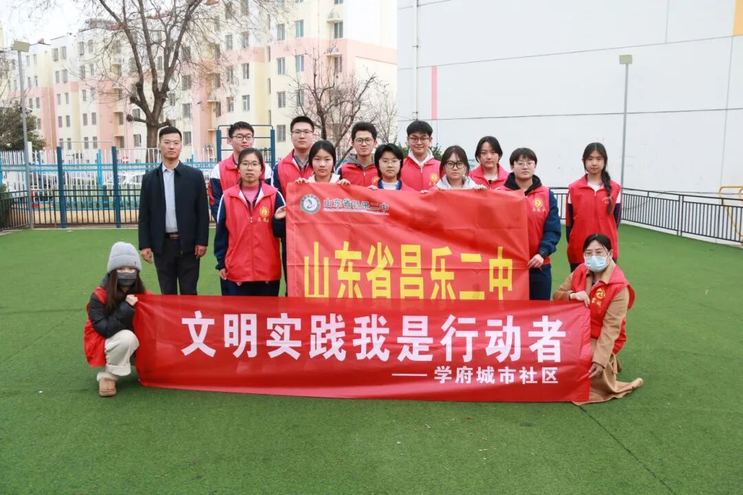 昌乐二中的学生志愿者团队在教师的带领下,手持扫帚、垃圾袋等工具,来到了学校周边的社区。他们分成多个小组,对社区内的公共场所进行了全面清扫。同学们不怕脏、不怕累,分工合作,捡拾垃圾、清扫路面积雪、擦拭公共设施。在他们的共同努力下,社区环境焕然一新,为居民创造了一个更加整洁、舒适的生活环境。