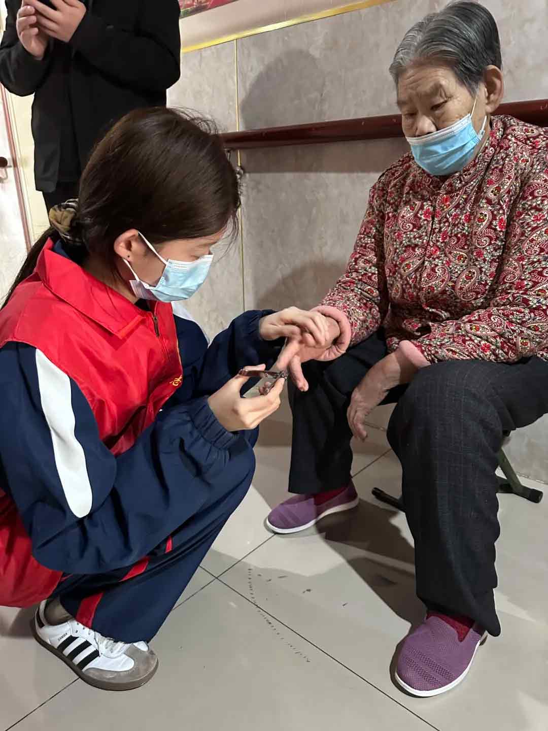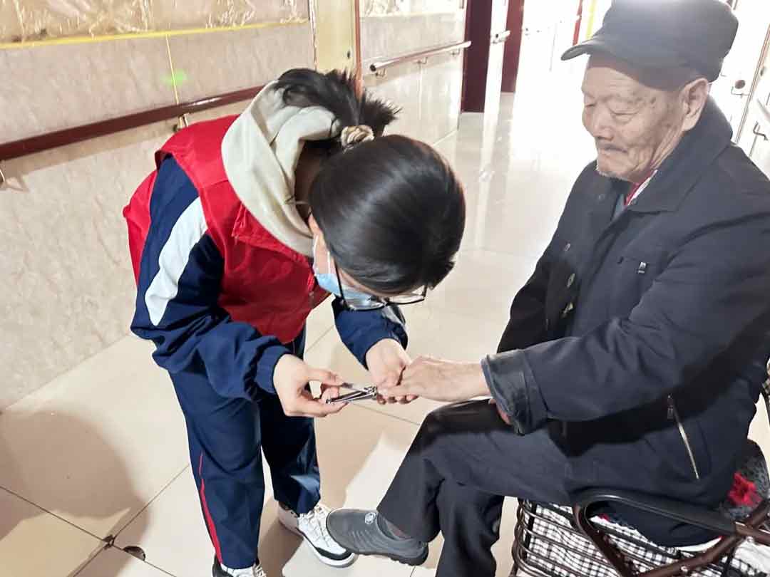 国际部志愿者团队来到了昌乐养老服务中心,为老人们送去了温暖和关怀。同学们在养老服务中心井然有序地分成小组,男同学投身环境美化工作,对院区积雪进行清扫,并细致擦拭公共设施;女同学则专注于生活照护,为老人修剪指甲、梳理头发、进行舒缓按摩,还与老人亲切交谈。活动中,志愿者们围坐在老人们身边,静静聆听他们讲述过往岁月中的珍贵回忆。老人们的脸上洋溢着亲切的笑容,与志愿者们其乐融融地相处,整个养老服务中心弥漫着温馨祥和的氛围。