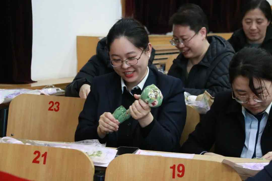 艾草清香氤氲会场,主持人带领全体女教职工体验艾草锤DIY。一针一线缝制健康,一锤一布敲打温情。在制作过程中,大家不仅体验了手工制作的乐趣,还领略到传统文化的魅力。