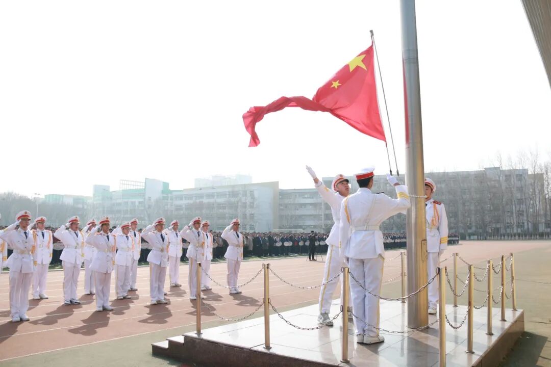 3月10日上午,我校在西操场举行第五周升旗仪式,王进友副校长做国旗下讲话,升旗仪式由学校社团联盟副主席党嘉乐同学主持,全校师生参加升旗仪式。