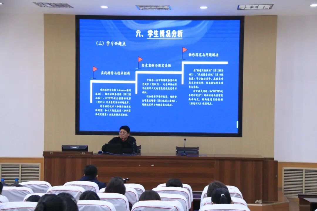 会议期间,与会人员观摩了各县市区优秀教师展示的《校园活动线上展》《直播网络我来建》《从感知到物联》《便捷的互联网服务》四个大单元教学公开课。我校梁玉华老师进行单元说课《直播网络我来建》,修建老师和王梓成老师分别出示了《数据分包和网络分层》和《数字身份和域名分析》两节公开课。