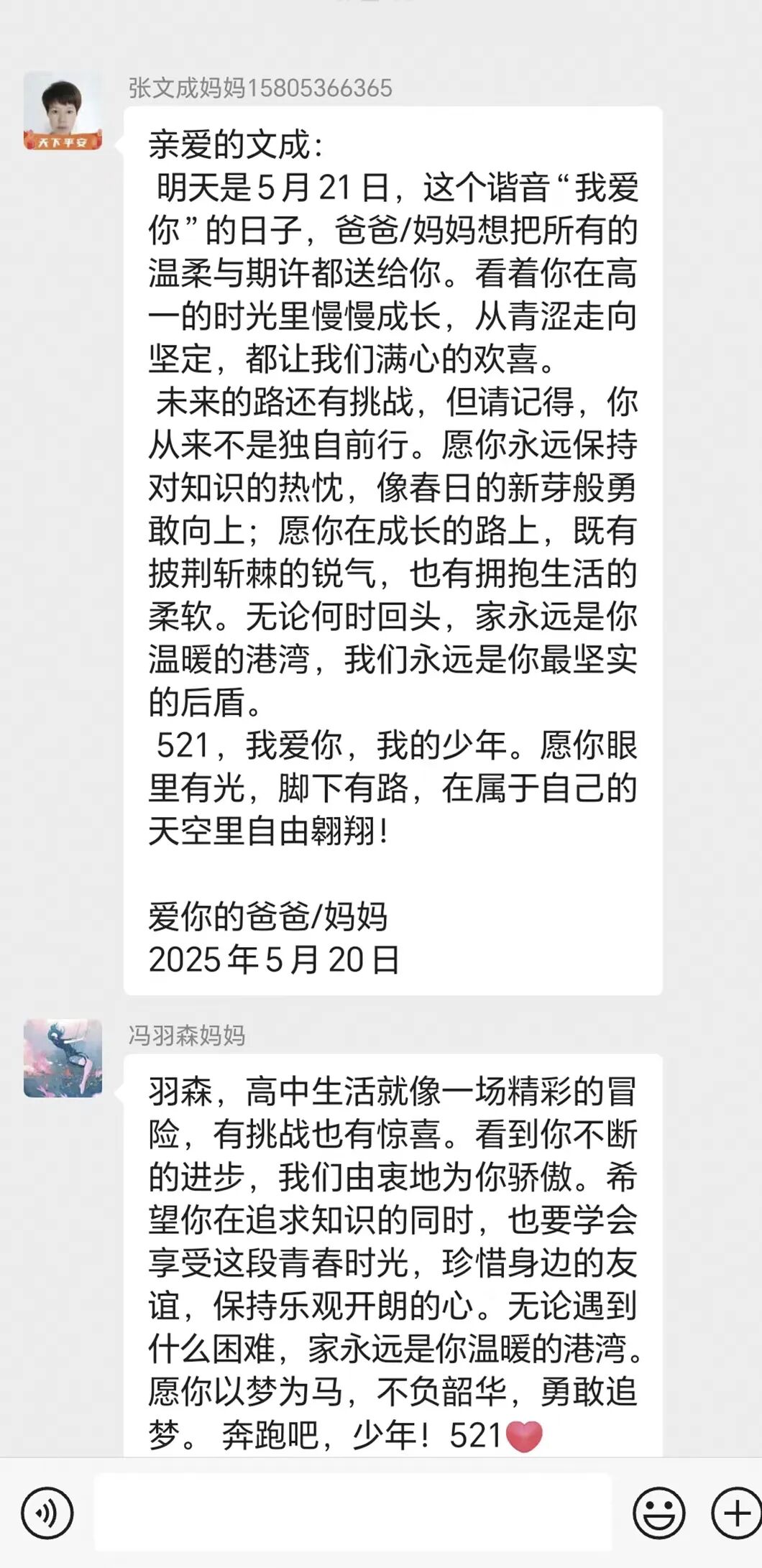 在这个特殊的日子里,家长们用心为孩子们写下了一段段祝福、赞美的文字。这些话语不仅是对孩子过去努力的认可,也是对他们未来旅程的美好期许,而孩子们也纷纷以“回信”的形式,用真挚的话语向家长表达了深深的祝福和赞美,传递着彼此间的爱与关怀,这一互动不仅让孩子们感受到了来自父母的鼓励和支持,也让家长们看到了孩子成长中的温情回应。