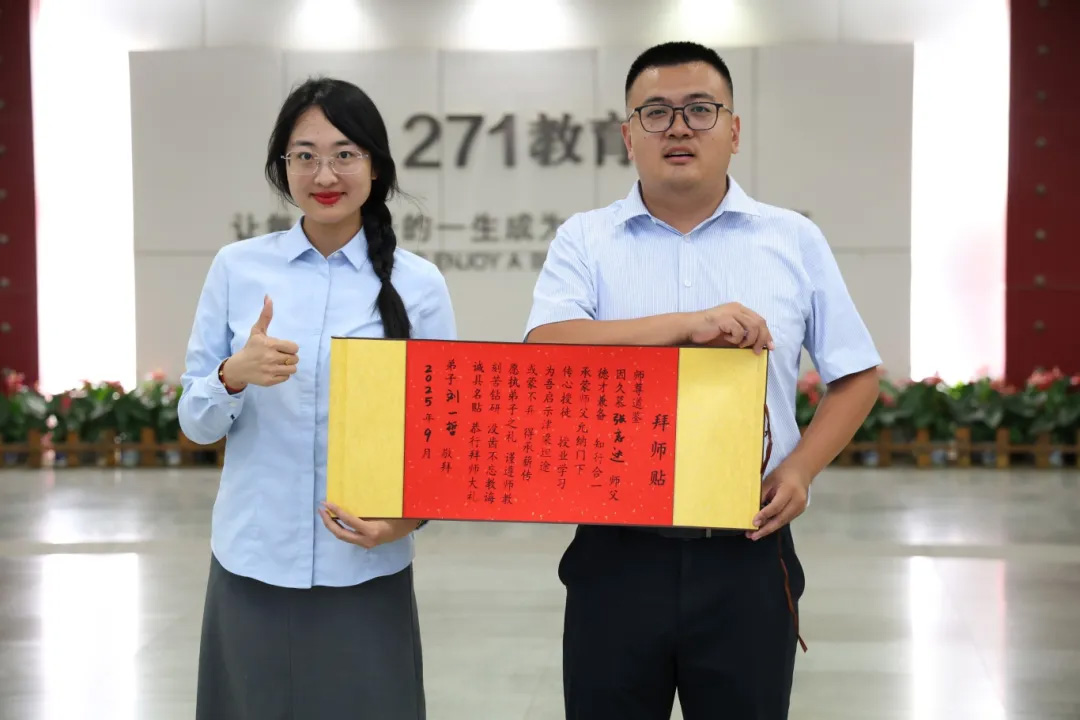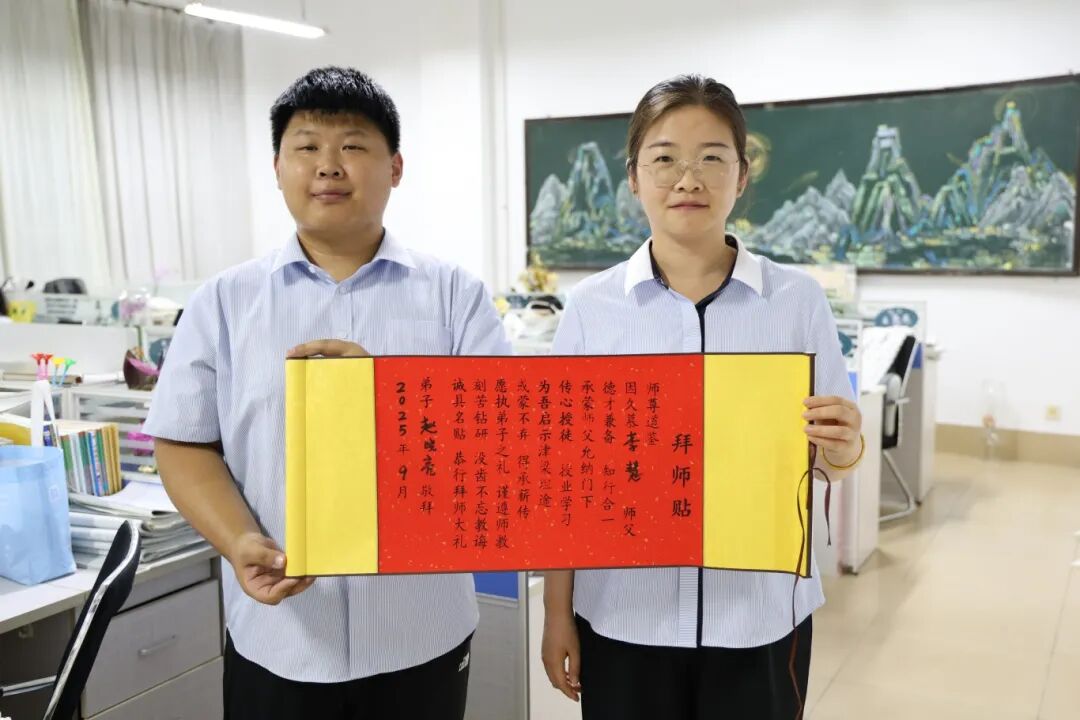 为促进青年教师成长,充分发挥骨干教师的引领、示范和带动作用,弘扬教育家精神,共同打造高素质教师队伍,9月15日,我校在一号报告厅开展“热爱·担当”青蓝工程拜师结对活动。