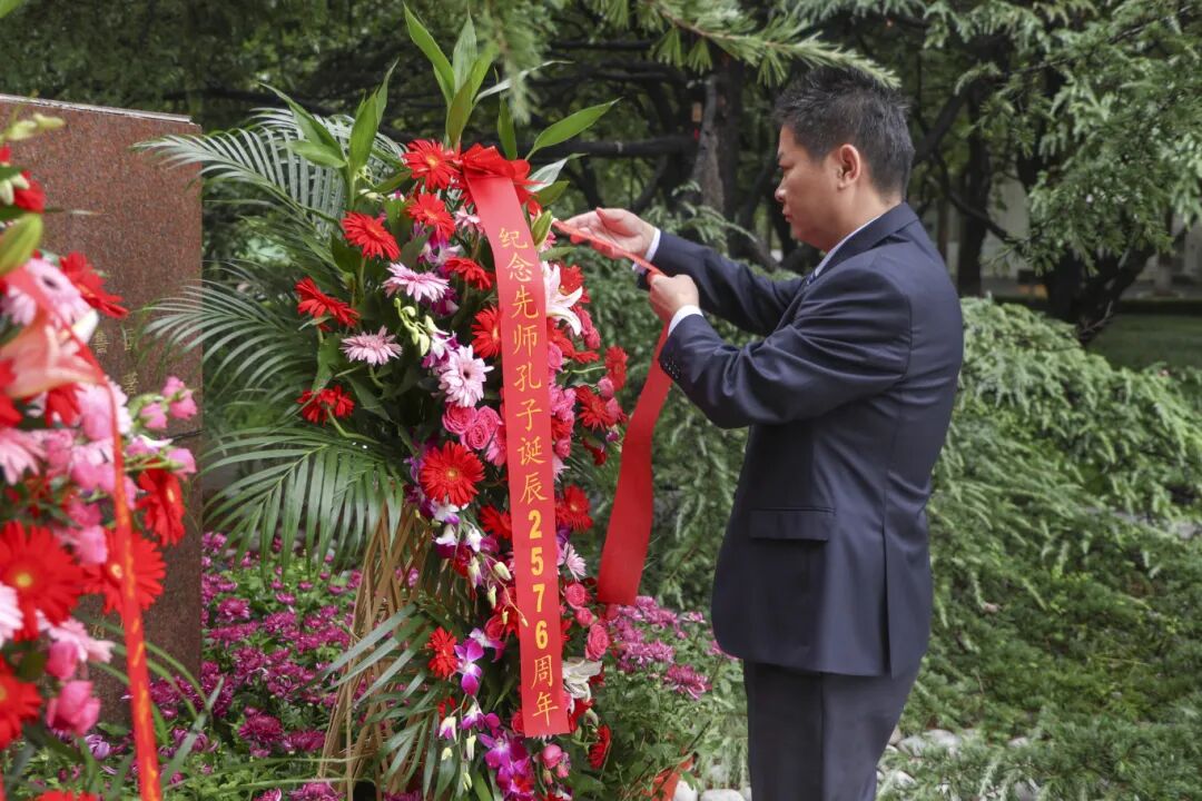 吕真锋校长在讲话中结合对儒家思想的理解,希望老师们要以先贤孔子为榜样,为人师表,立志成为师德高尚、业务过硬的人民教师。希望同学们要更多地体悟孔子的教诲和为人处世之道,做既有丰富的文化知识,又有高尚道德情操的优秀学子。倡导学习圣贤智慧,延续文化血脉,拥有高尚品德,积极努力成长,肩负起时代赋予我们的重任!
