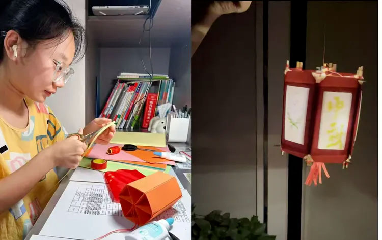 同学们以巧手创作传递家国情怀,通过制作灯笼、月饼等传统手工艺品,在实践过程中深化文化认同。这些创意作品不仅是技艺的锻炼,更成为连接古今的情感纽带,让文化自信与爱国情怀在亲身参与中自然生根、茁壮成长。