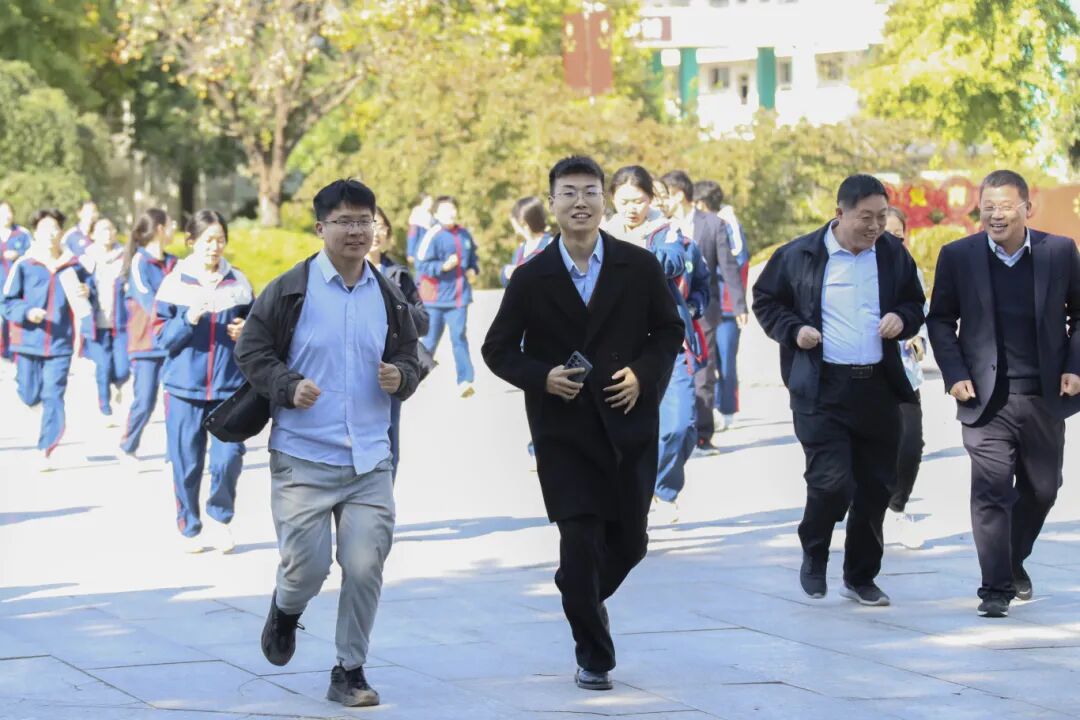 活动伊始,张申校长首先代表学校,向全体师生员工致以诚挚问候与美好祝福。他指出,学校六十六年来风雨兼程,始终与时代同频共振,培养了无数栋梁之才。在此重要时刻选择以奔跑形式庆祝校庆,寓意深远。张校长指出,“奔跑”象征着二中拼搏进取、永不言败的精神,亦代表着在成长道路上永不停歇、追求卓越的执着信念。他勉励全体师生,将今日奔跑所激发的热情与活力,转化为明日勤奋工作与刻苦学习的不竭动力,以健康体魄、阳光心态与奋斗姿态,共同开创学校更加美好的未来。