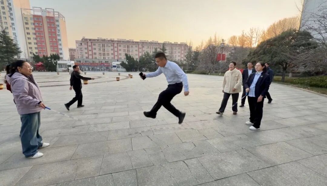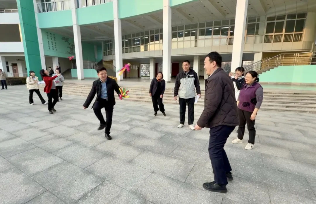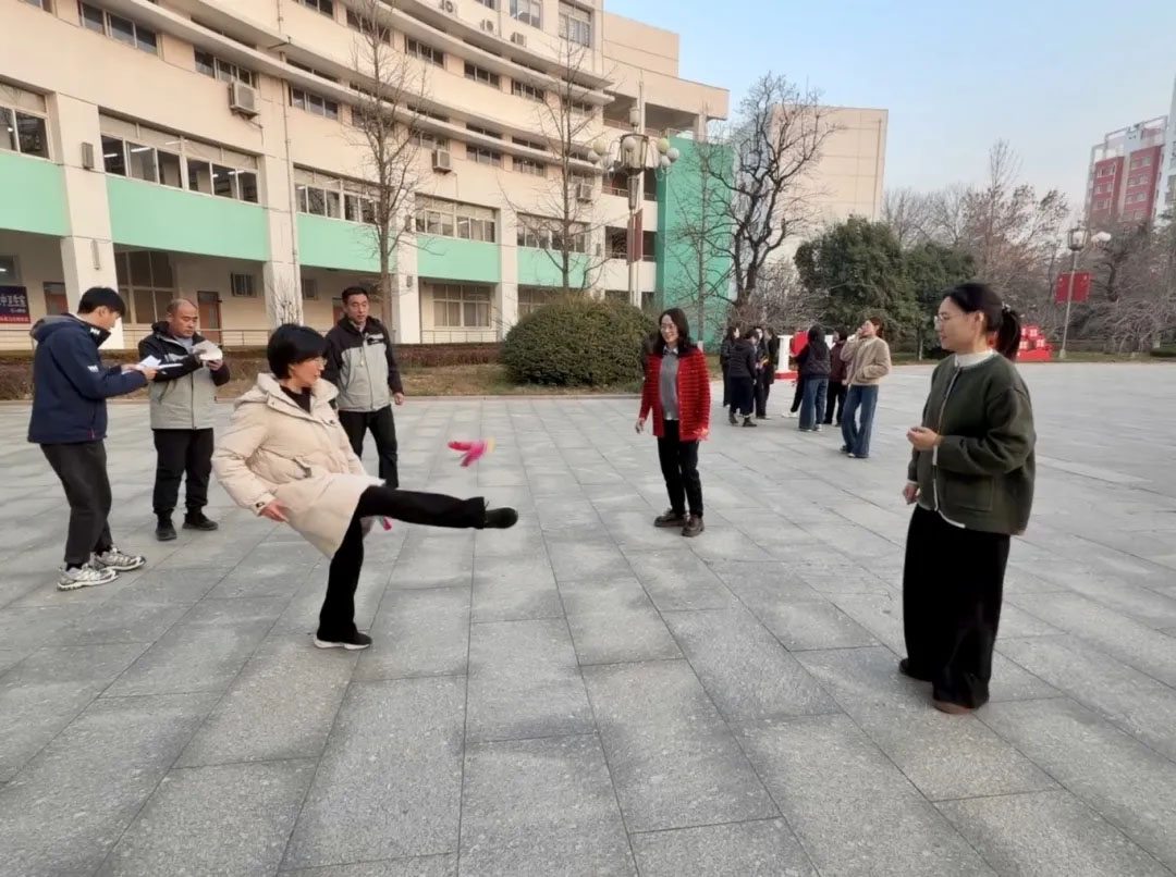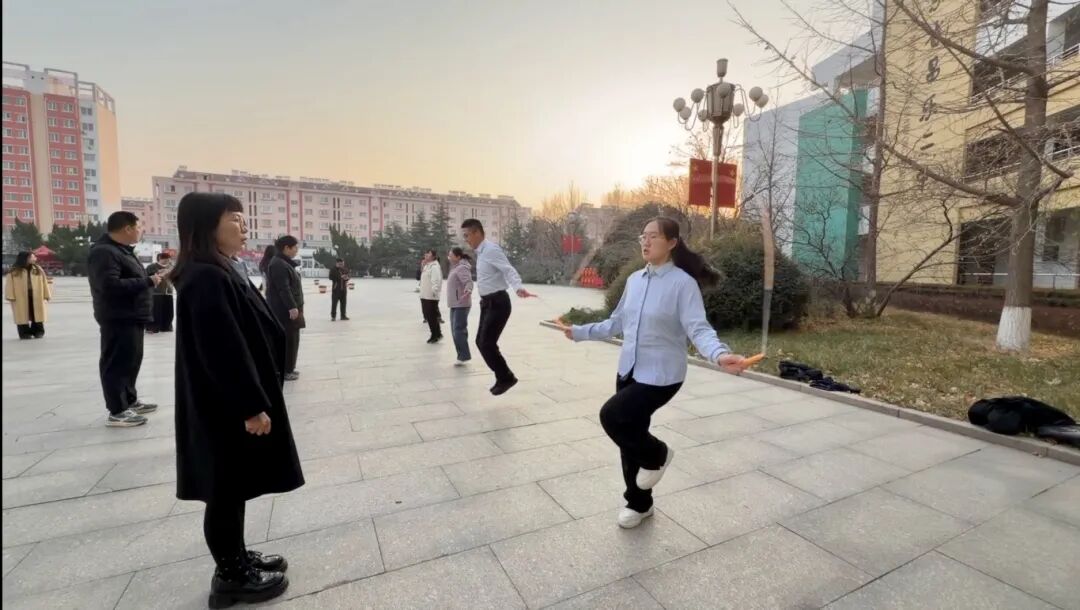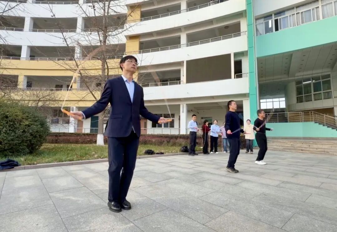 活动现场,教职工们全身心投入、踊跃挑战——五彩的毽子在脚尖轻灵起落,笑容在脸上绽放;跳绳环节中,老师们则手腕翻飞,绳影随节奏跃动,步伐轻盈变换,尽显活力与自信。整场比赛气氛热烈,生动展现了昌乐二中教职工团结协作、奋发向上的精神风貌。