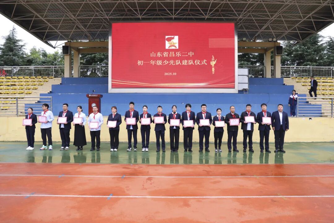 初一年级张瑜主任和初中部董智超主任和依次宣读了“初一年级中队成立决定”和“山东省昌乐二中关于聘任2025至2026学年度中队辅导员的决定”。董智超主任为16位中队辅导员颁发聘任证书,进一步夯实了少先队组织建设的基础。