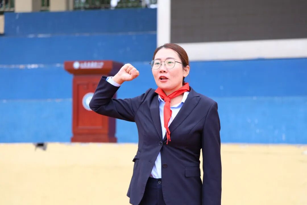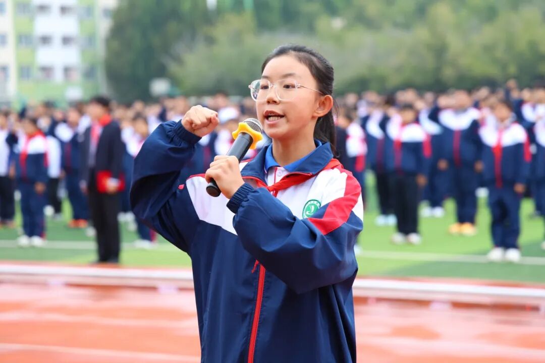 在少先队大队长钟晴同学的带领下,全体队员重温入队誓词,铿锵誓言表达了他们热爱祖国、热爱人民、勤奋学习、锻炼自我的决心。张瑜主任带领全体队员呼号,队员们神情专注、精神振奋,胸前的红领巾熠熠生辉,彰显出新时代少先队员的责任与担当。