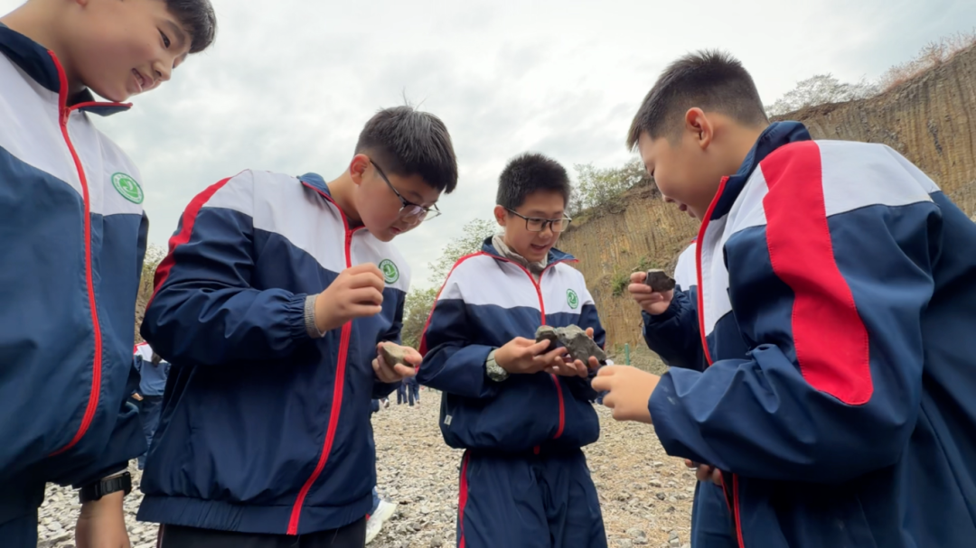 昌乐远古火山地质公园是一处以火山地貌和蓝宝石原生矿床为主题,涵盖火山遗迹景观、古生物化石、典型地层剖面、构造形迹的综合性地质公园。学们沿着蜿蜒的山路来到了远古火山口,实地考察并感受昌乐远古火山群的特点,归纳火山口的地理特征,探究昌乐蓝宝石形成的原因。同学们以小组为单位现场展开探究性学习:有的敲打石头寻找蓝宝石,有的触摸拔地而起的石柱,有的还采集了玄武岩等多种火山岩石的标本…积极探索求知,努力成长自我。
