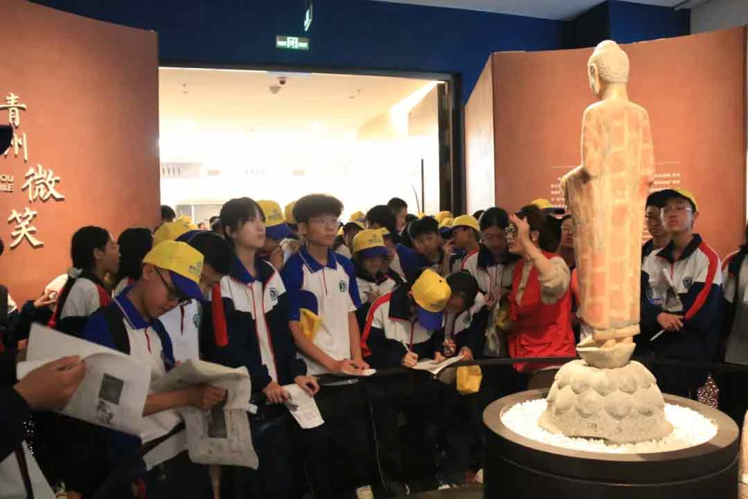 走进青州博物馆,馆内丰富的文物藏品令人目不暇接,从精美的陶瓷器到珍贵的书画作品,从古老的青铜器到神秘的佛教造像,每一件文物都凝聚着古人的智慧与创造力。在讲解员的带领下,同学们认真观察、积极提问,深入了解青州地区在不同历史时期的发展变迁,对青州的历史文化有了更为直观和深刻的认识。