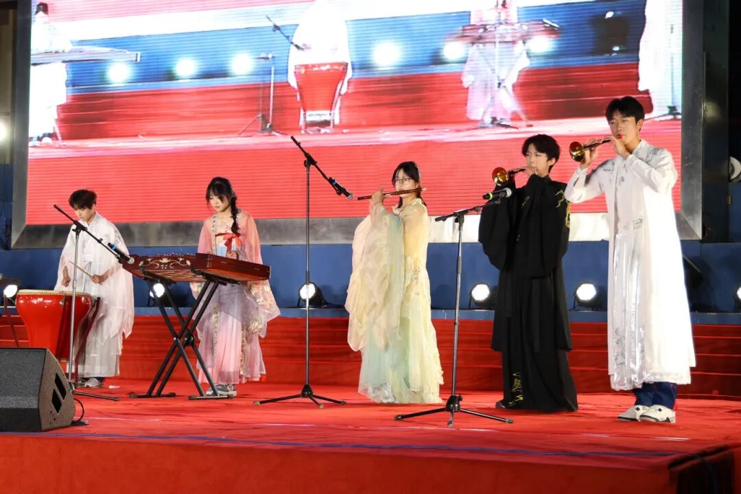 绚烂的霓虹,绽放的青春。体育美食节晚会在西操场精彩上演。嗨椰乐队、foryoung舞社、蓝光合唱团、时光戏剧社、以及学生家长带来的动感广场舞等节目,点燃全场气氛,精彩的演出,集中展示了我校艺术社团教育成果,彰显了二中学子青春向上、朝气蓬勃的精神风貌。