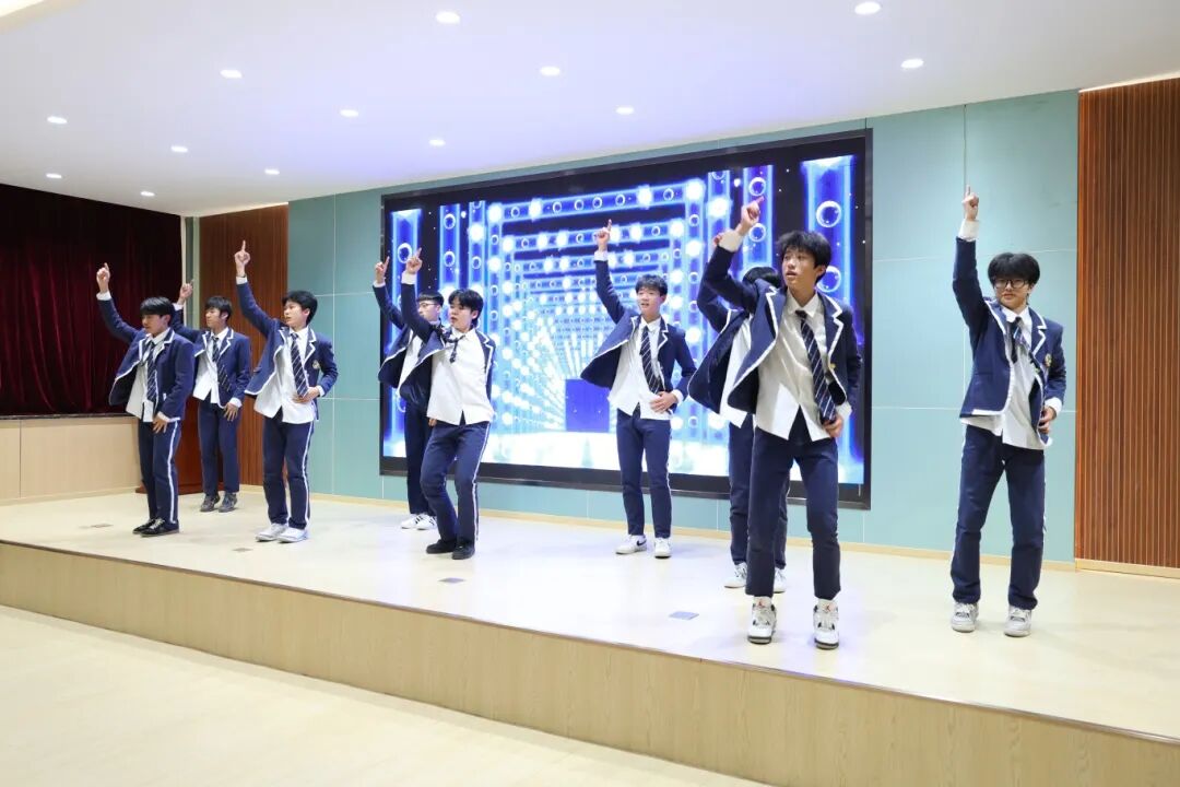 生日会在郑洪轩同学演唱的歌曲《她说,老啦》中温情启幕。随后,“花儿少年”舞蹈社团带来流行舞《青春有你》。轻快的节奏、跃动的舞姿,洋溢着青春的朝气与活力。