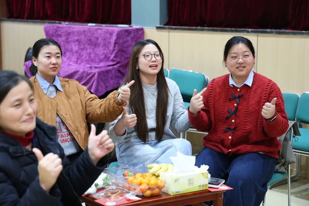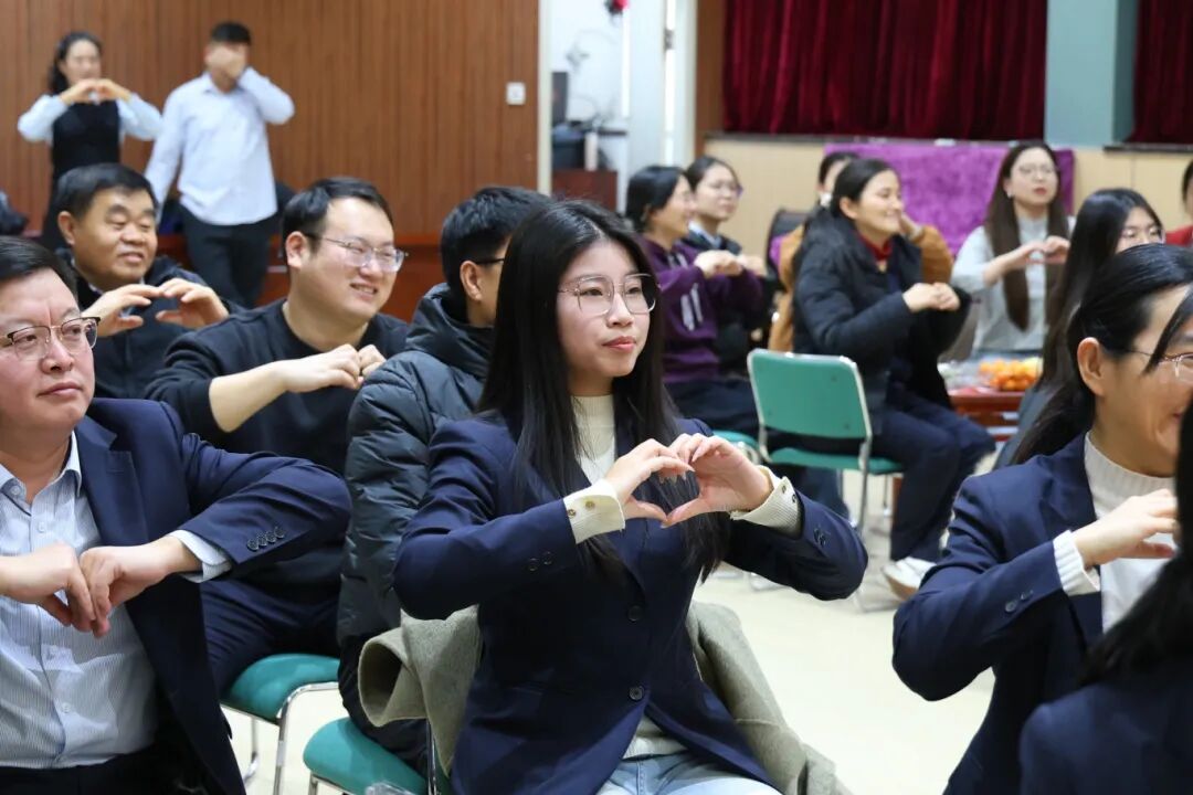 生日会上,音乐处的老师们精心带来了手势舞《新年你好》的教学。老师们认真学习手势舞,在轻快的旋律中舒展手臂、变换手势,动作整齐而充满活力。现场洋溢着轻松欢乐的气氛,每个人脸上都绽放着愉悦的笑容。