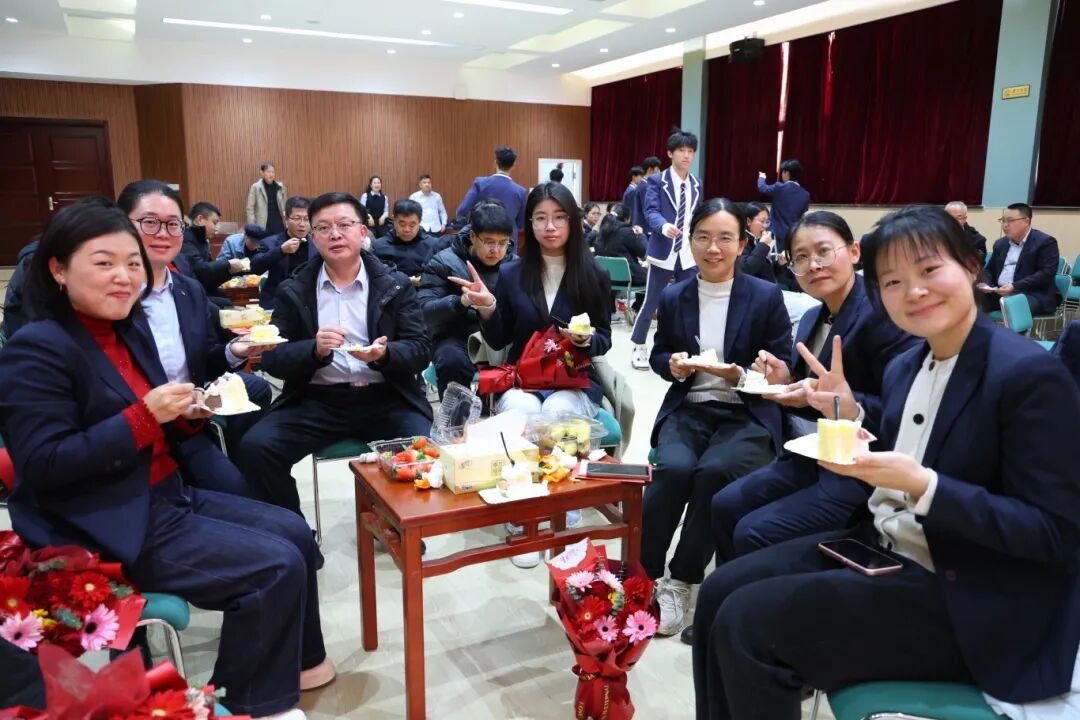 生日会最后,时连湘副校长为寿星代表颁发了生日蛋糕券、生日贺卡和鲜花,与其他领导老师共同切蛋糕,品味蛋糕甜美和生活美好。