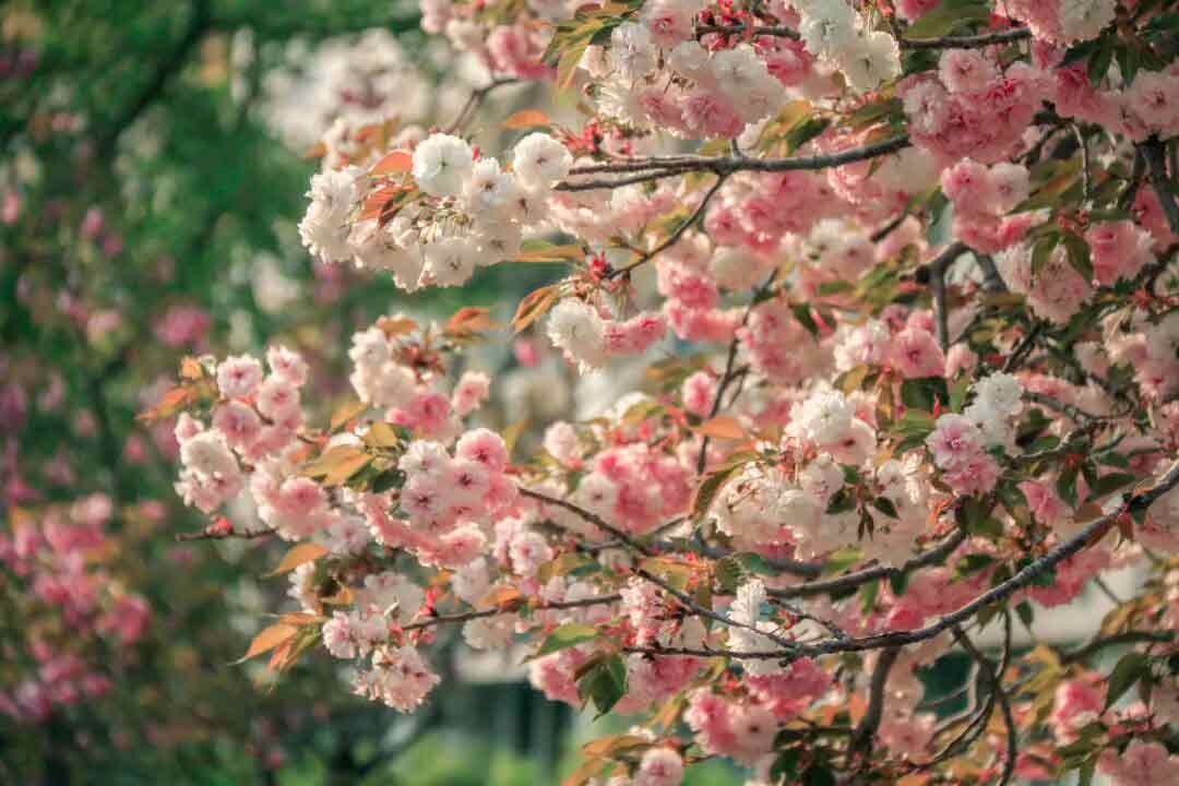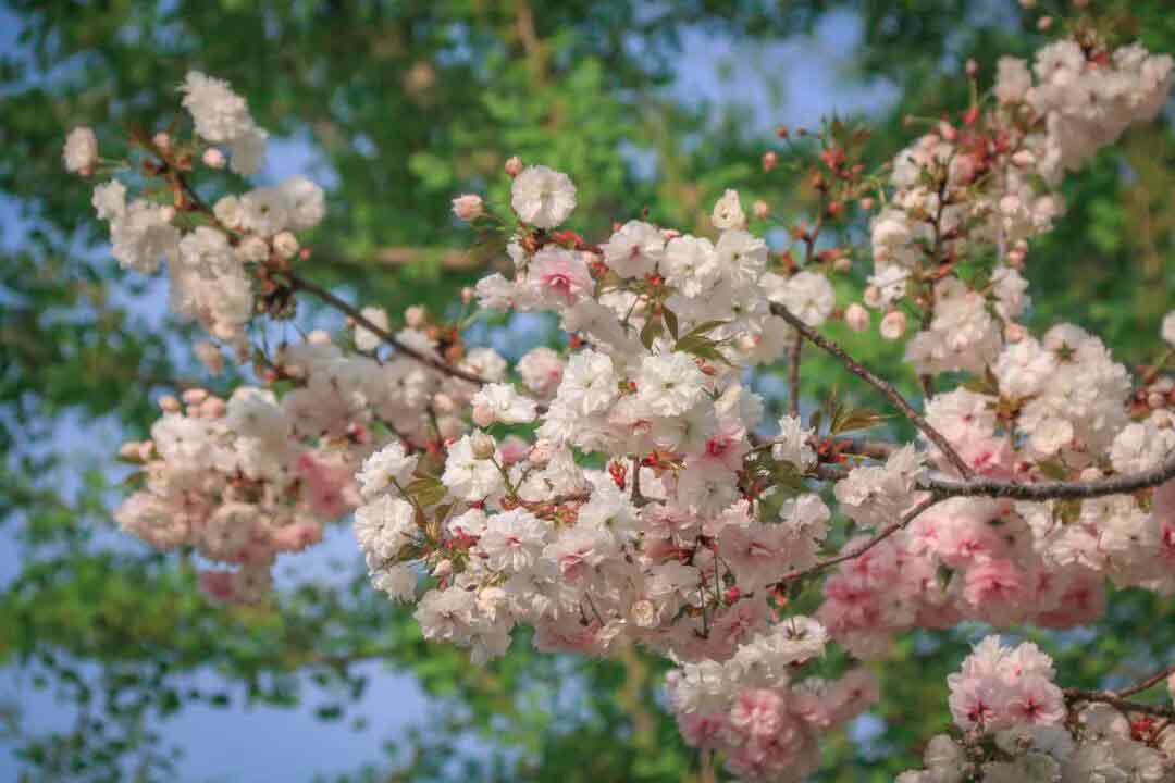 粉白相间于枝头静静绽放