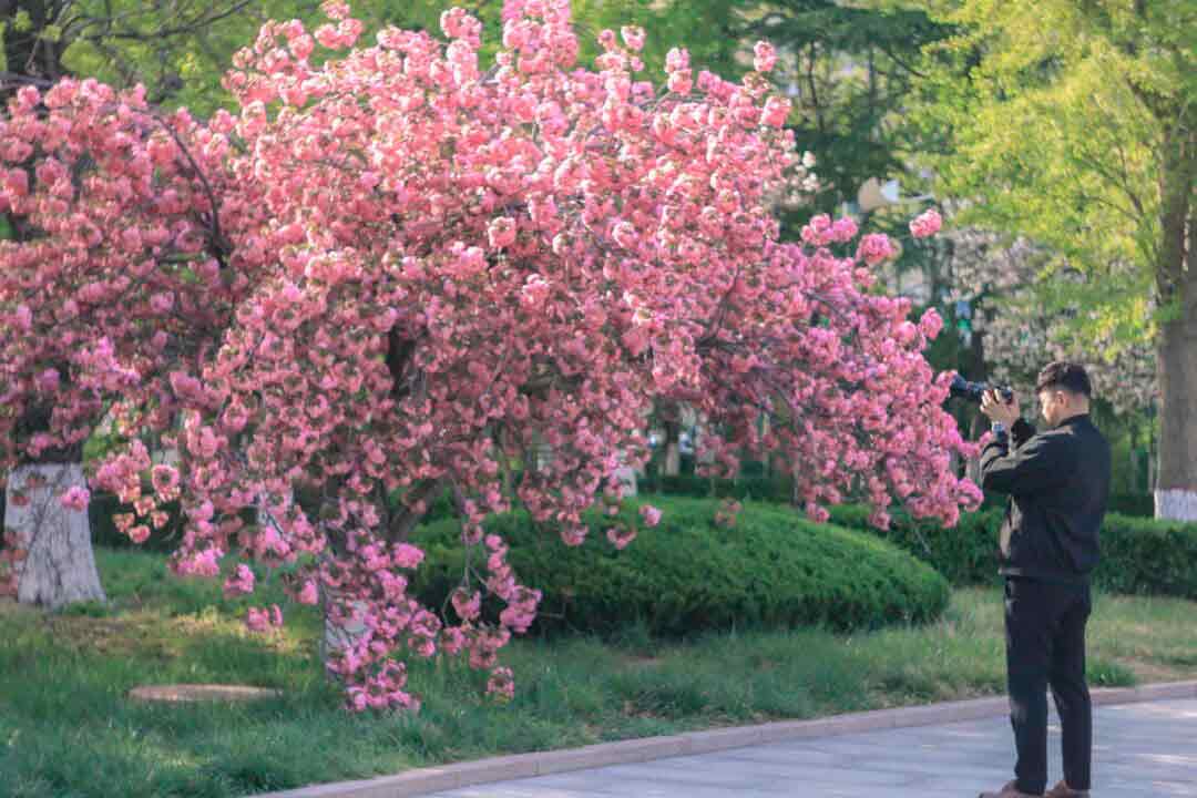 用相机定格与樱花相伴的美好瞬间